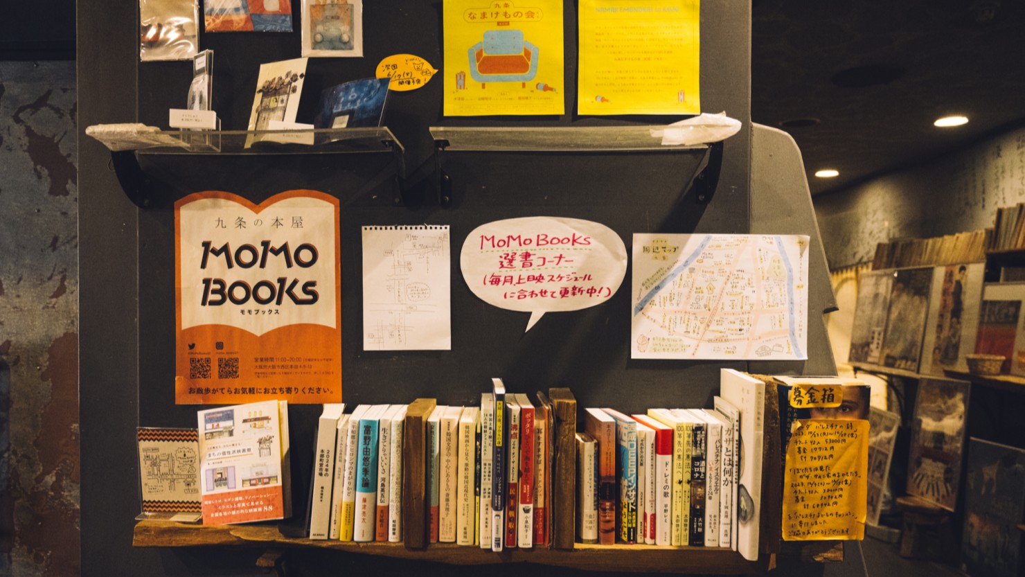 ―最初から九条にしようと決めていたのではなく、ご縁だったのですね。他にも館内には、「MoMoBooks」の選書コーナーや、山﨑さん手作りの飲食店マップがあるなど街とのつながりも大切にしている印象を受けました。これは意識的にされているのですか?