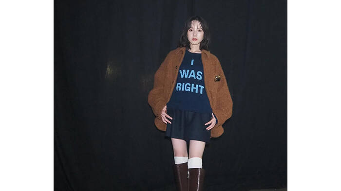 山本里菜は白いふわふわ素材の襟付きトップスに