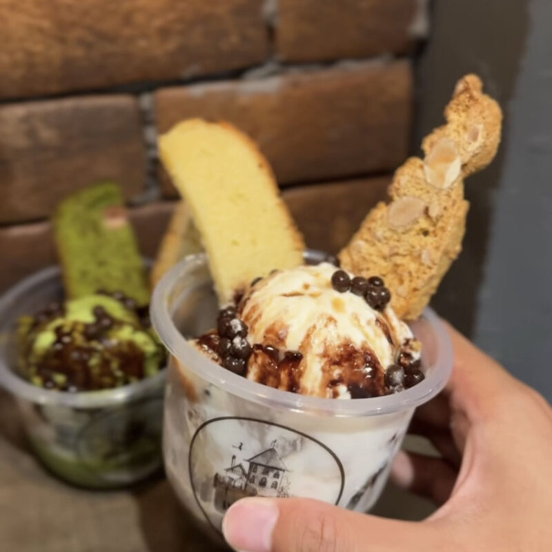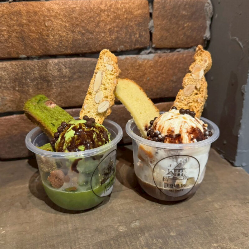 ひんやりジェラートとパウンドケーキの組み合わせは間違いなく絶品です。