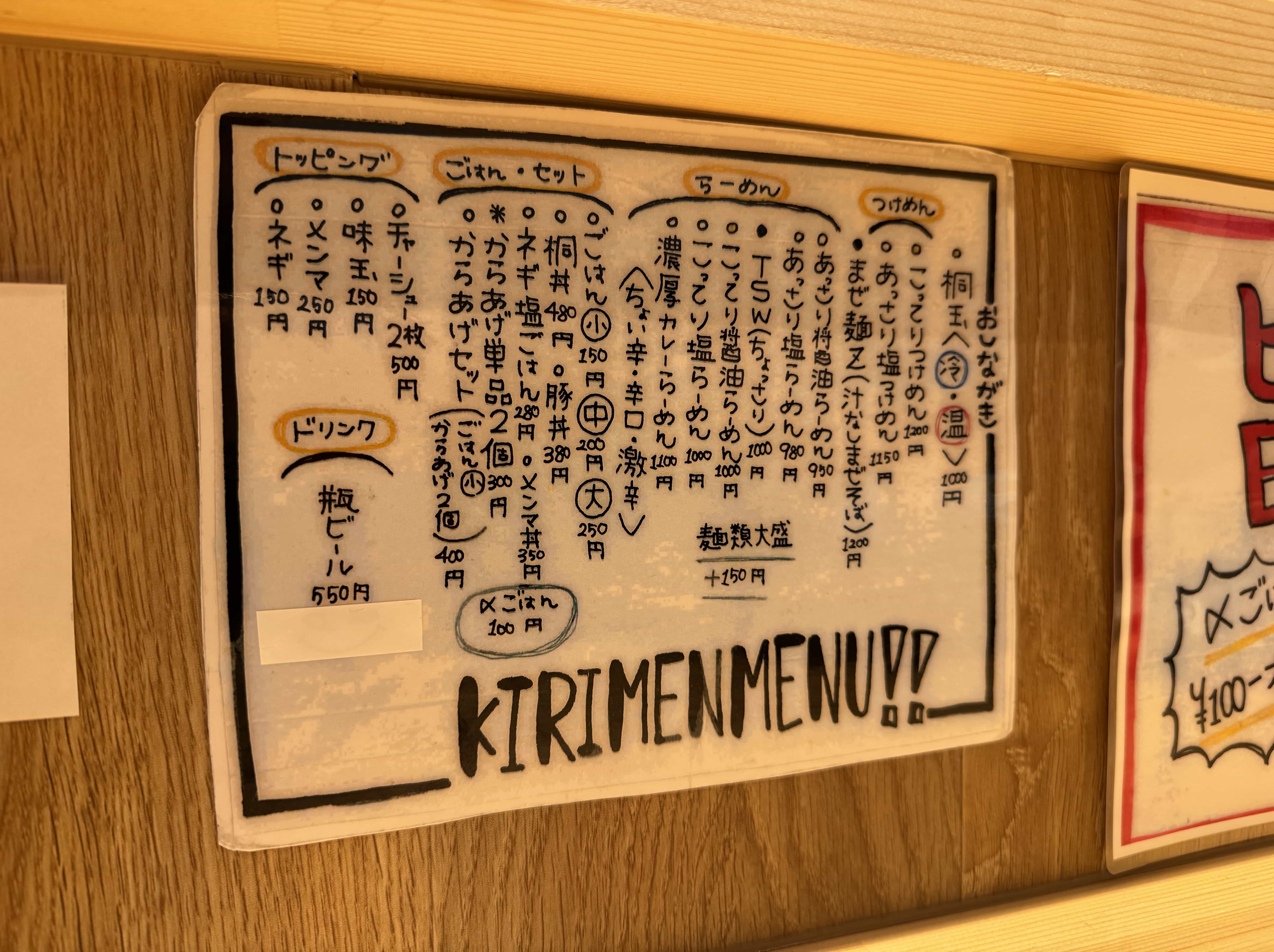 名物「桐玉」のほか、ラーメンやつけ麺、ご飯ものまでラインナップ。想像していたよりもメニューが豊富で通い甲斐がありますね。