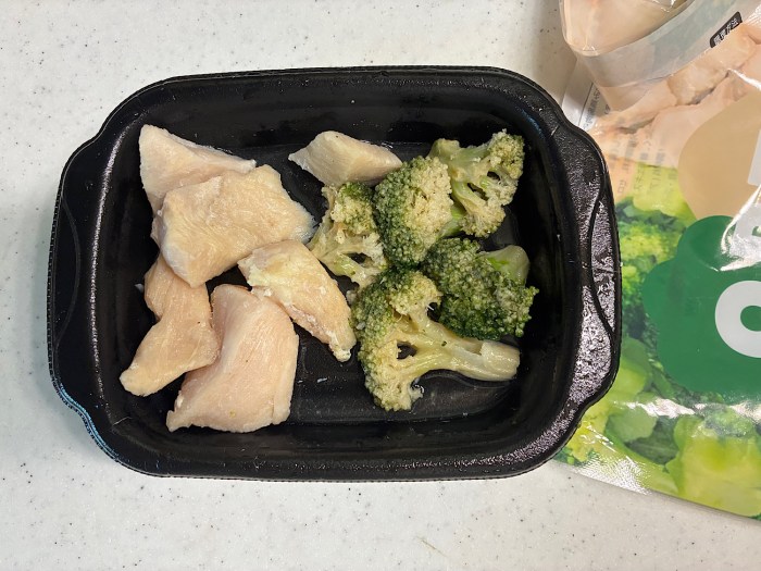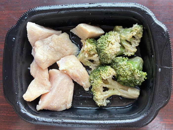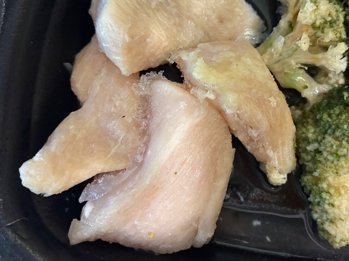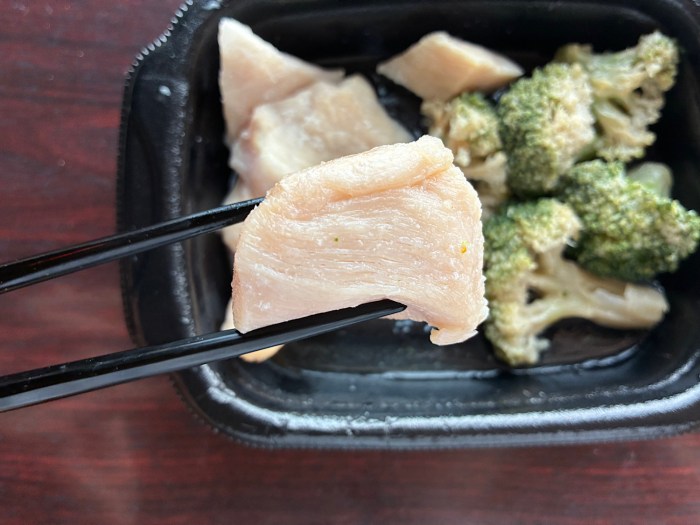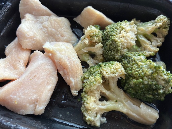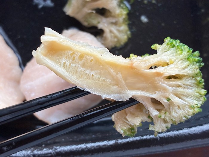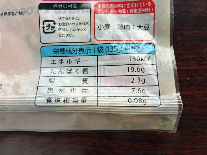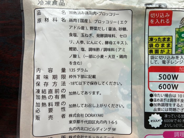 ちなみに内容量的には大きさバラバラな鶏胸肉が6切れ、ブロッコリーが5個。重量にして135gだそうだ。