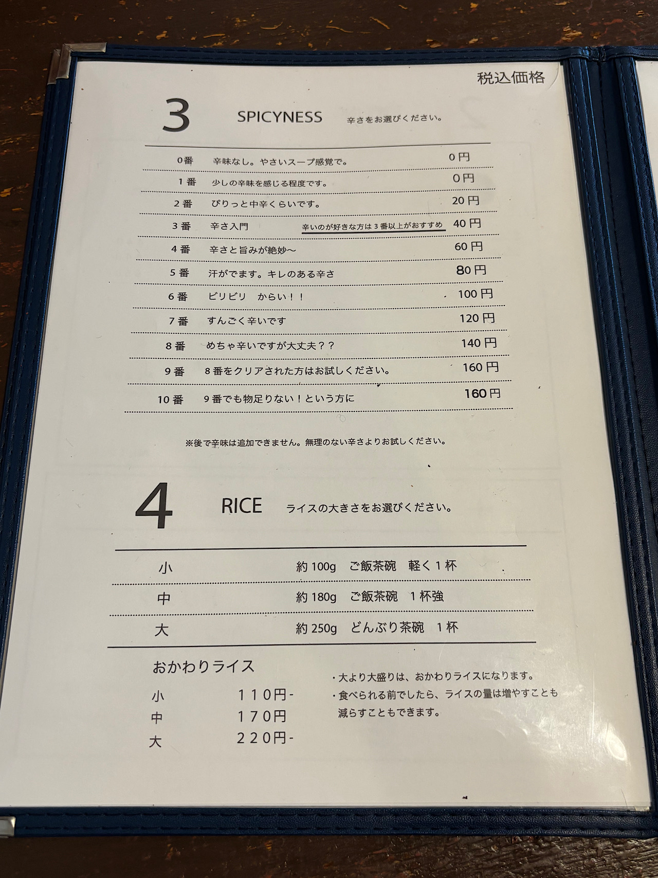 人気は2~4番ですが、実は10番で物足りない人には11番もあるそうで、激辛好きのみなさんは存分にスパイシーなカレーをお楽しみください。