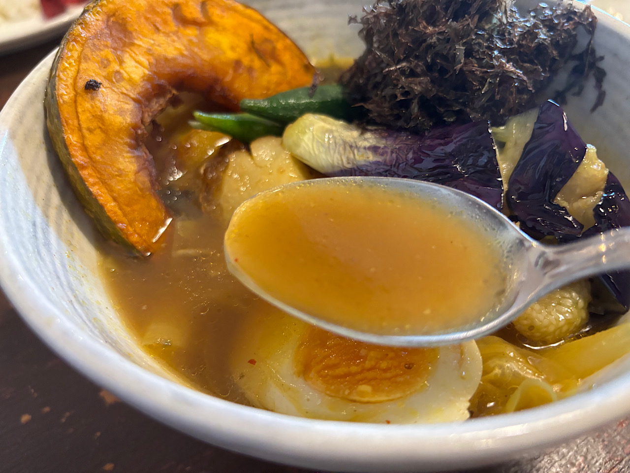 スパイスや野菜のうま味が凝縮したスープは深みがあり、舌でしっかり味わいたいおいしさと風味があります。
