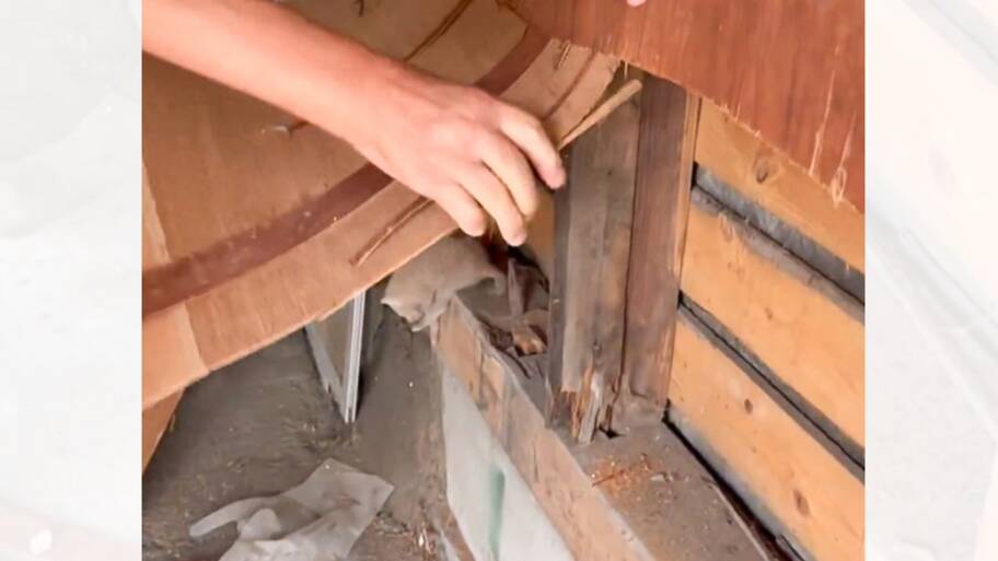 深夜3時が過ぎたころ、外から子猫の大きな鳴き声が突如聞こえてきたといいます。慌てて飛び起き、再度自宅の周りを探してみると、室外機の裏側に小さな子猫がいたのだそうです。あまりの狭さに手が入らず逃がしてしまったため、玄関前に捕獲機を設置して探し回るも、なかなか保護には至れませんでした。