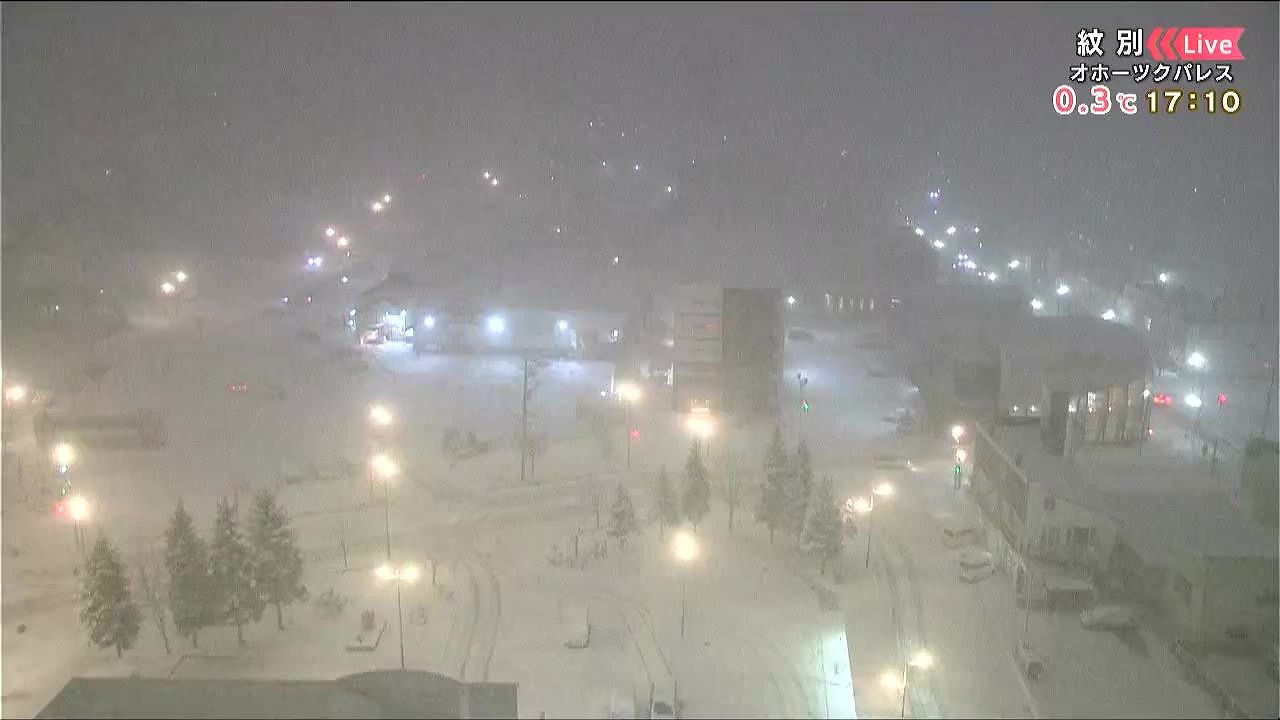 ここ1~2時間で一気に積もりました。午後5時の積雪は2センチです。紋別でもあす8日(土)明け方にかけて雪が降るでしょう。橋の上など日中でも路面凍結に注意して下さい。