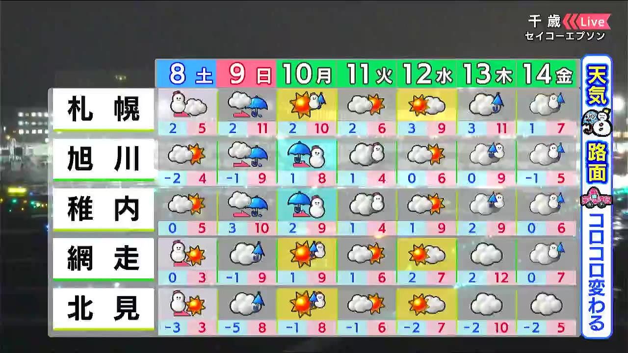 北海道のあす8日(土)の天気と、週間予報を、HBCウェザーセンターの児玉晃(こだま・あきら)気象予報士がお伝えします。