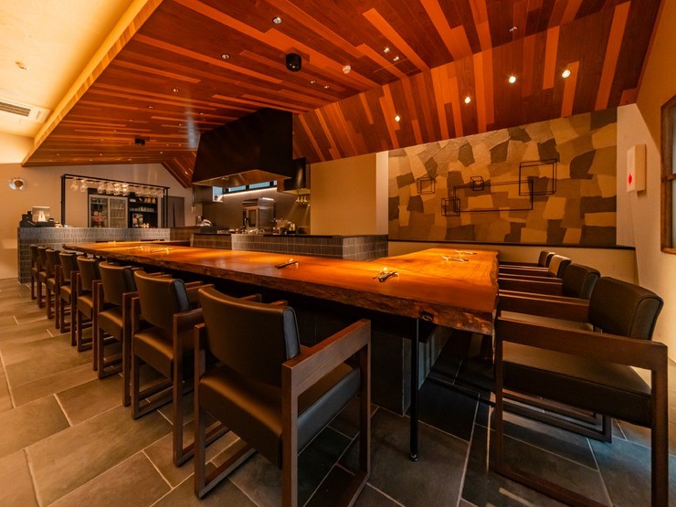 豊水すすきの駅から徒歩3分の【グリルダイニング いしざき】。北海道の厳選食材をメインに、素材の魅力を引き出す炉端スタイルで提供しています。店の中心にあるカウンター席は、ナチュラルな色合いのヨーロピアンオーク材を使用し、非日常感を演出。料理ができ上がっていく職人技を間近で眺めれば、二人の会話も盛り上がること間違いなし。