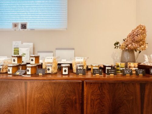 山都町の岩永製茶園のお茶やハーブティーも置いてありました。パンのお供にいかがですか? お菓子はプレゼントとしても重宝されています。