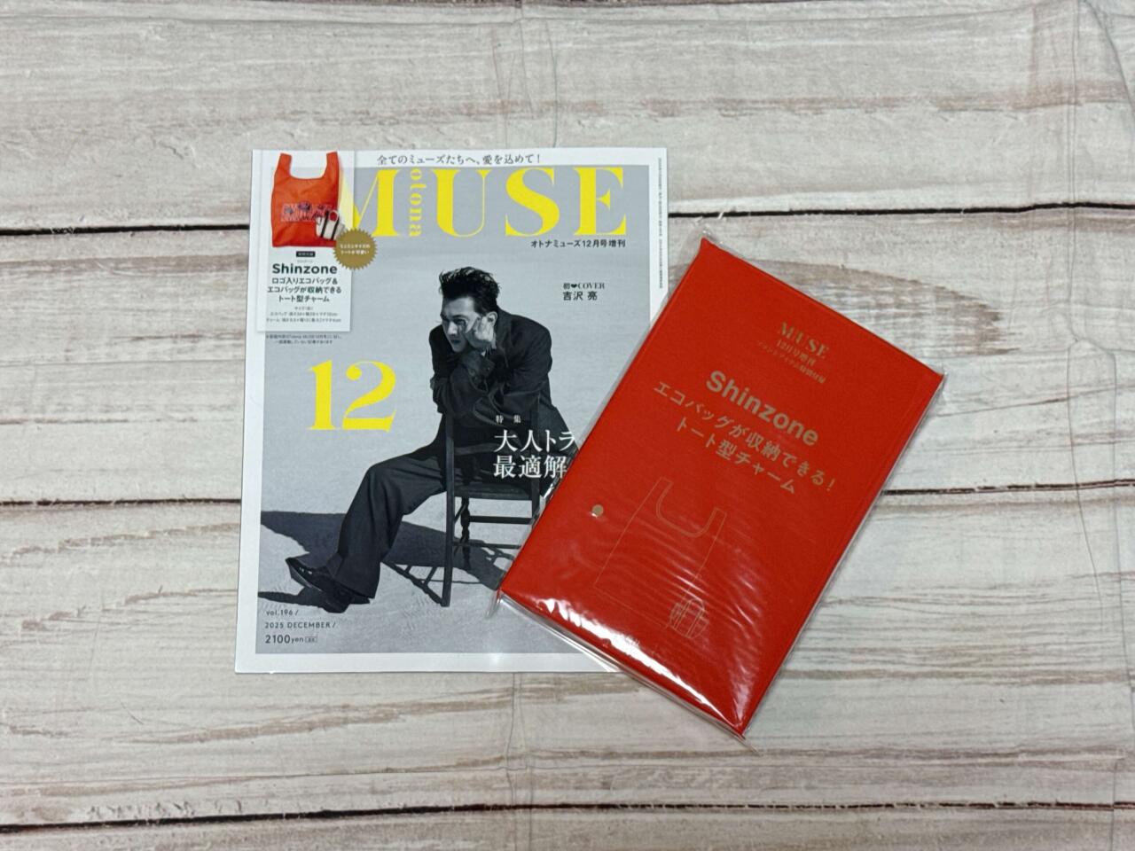 2025年10月28日(火)に発売された『otonaMUSE(オトナミューズ) 』2025年12月号増刊には、Shinzone(シンゾーン)コラボの「エコバッグ&トート型チャーム」が付録としてついてきます。