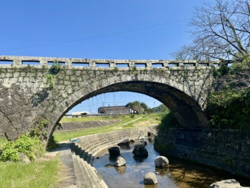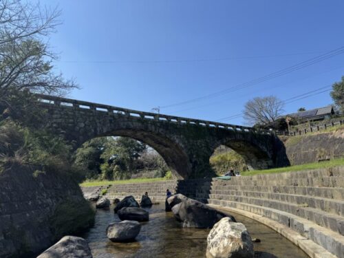 【荒尾市】歴史ある石造り眼鏡橋の下で、のんびりと水遊び~岩本橋~