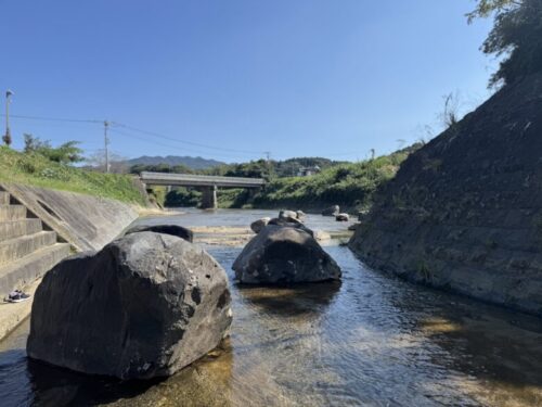 熊本市内中心部から車で一時間ちょっと。この美しい川は関川です。