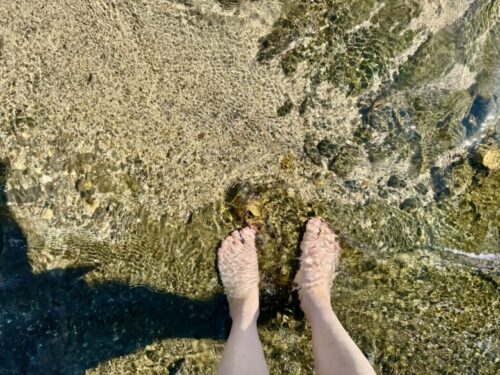 スニーカーでしたが、タオルを持ってきていたので、ざぶんと入ってみました。とても心地よいです。(取材時10月初め)