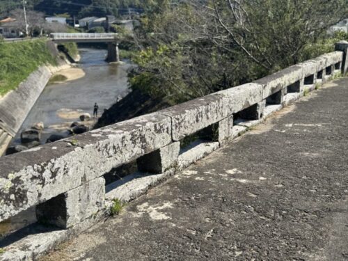 このように広く浅く遊べるようになっております。 ただし、裸足ではかなり足の裏が痛いので、サンダルを履いて遊ぶのがオススメですよ。水がとても綺麗で整備してくださる方々に感謝です。 こちらの岩本橋は1965年(昭和40)2月25日に熊本県の重要文化財されています。