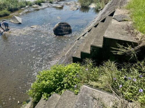 橋の反対側の川は流れが速くなっているところがありますので、小さなお子様などくれぐれも目を離されませんよう。