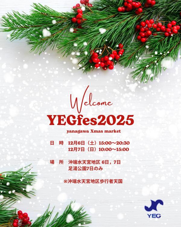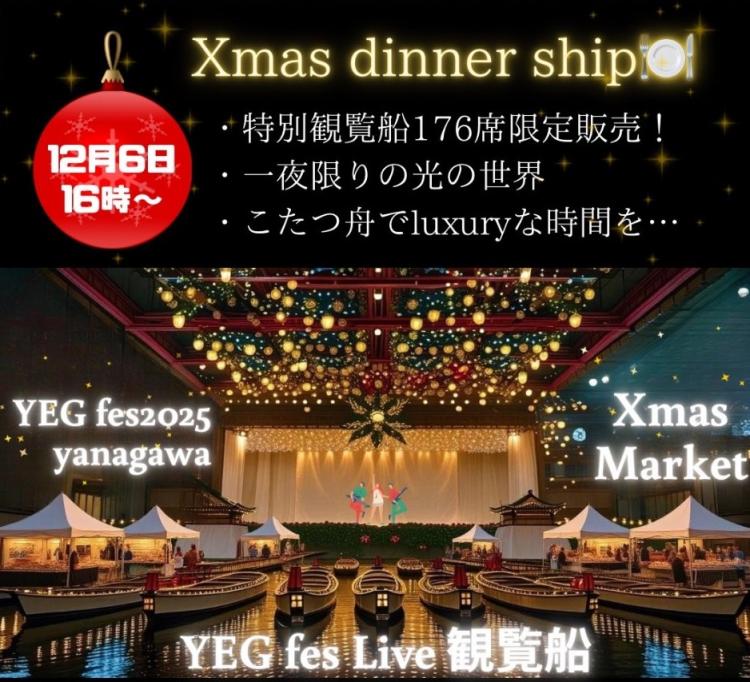 いよいよ12月6日(土)7日(日)、福岡県柳川市の沖端エリアが、幻想的な光と音のテーマパークに変身!その名も『YEG fes 2025 yanagawa Xmas market』!「柳川の新しい冬物語」をテーマに、20年ぶりに「水上特設ステージ(舟舞台)」が復活。沖端水天宮周辺には全長200mに及ぶイルミネーションが点灯し、川面に映る光と音楽のコラボレーションは、うっとりするほどロマンチックです。