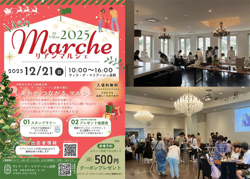 長野市で18周年を迎える結婚式場「ヴィラ・デ・マリアージュ長野」で、『Lien Marche(リアンマルシェ)』が、2025年12月21日(日)に開催。
