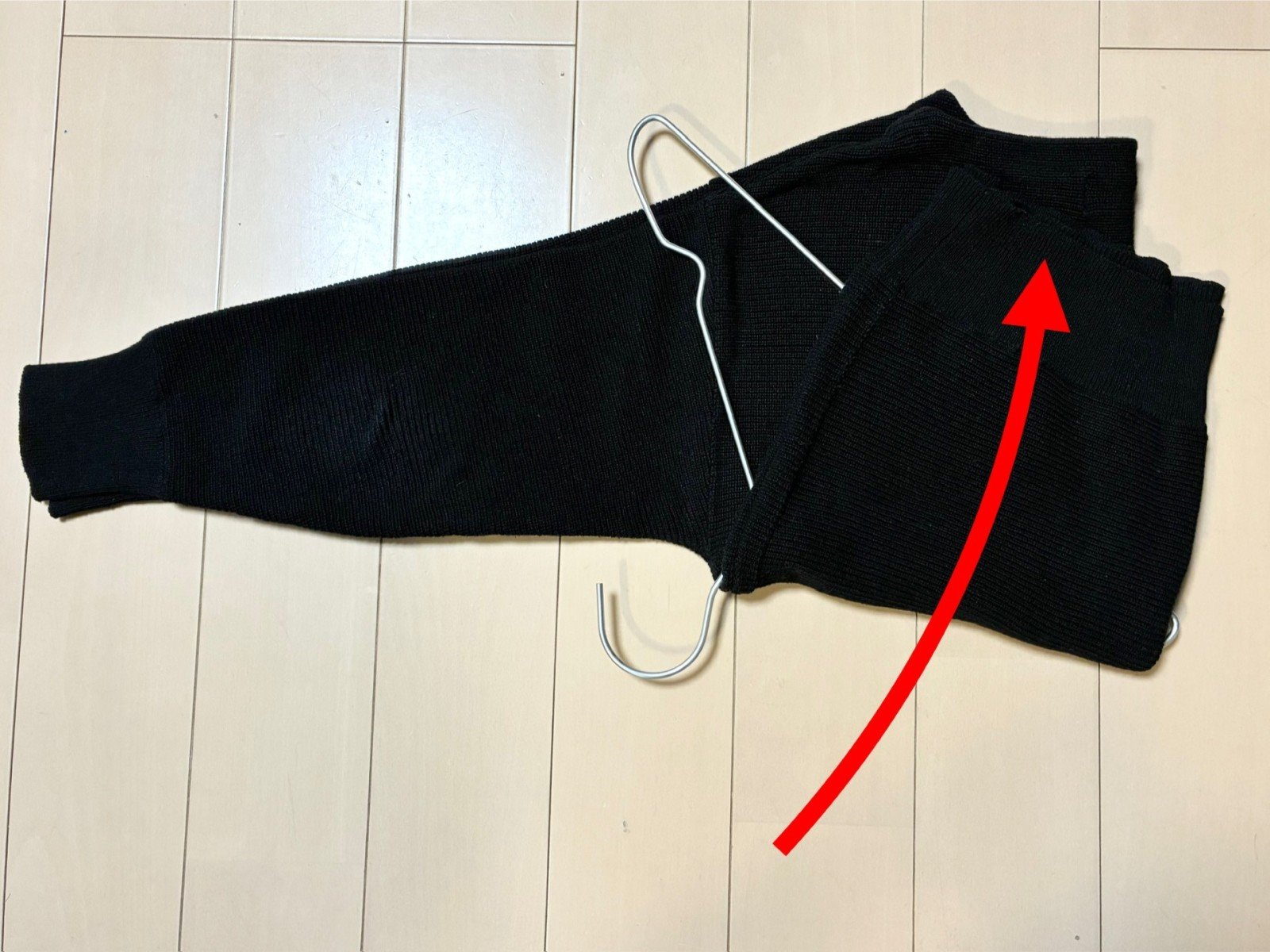3.服の下半分をハンガーの肩部分にかけるようにたたみます。
