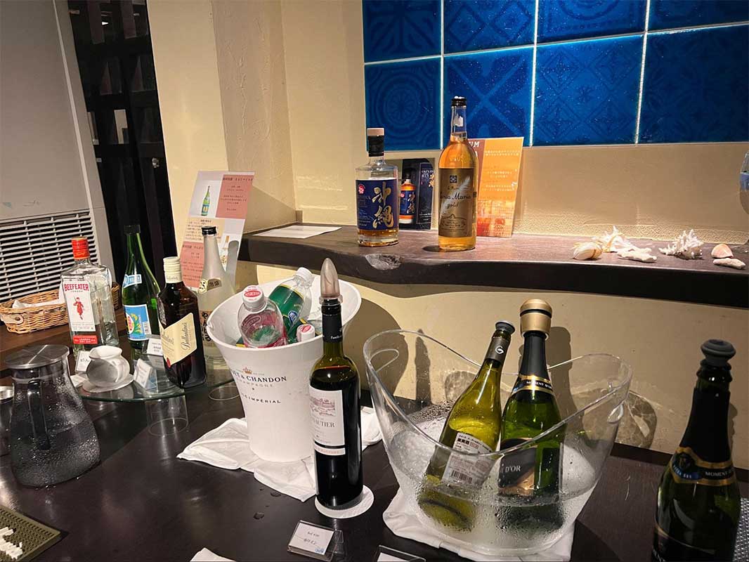ラウンジでは時間帯によって料理やドリンクが少しずつ変わるのも魅力。夜には泡盛やワイン、ウイスキーなども揃っていて、お酒好きの方にはかなり嬉しいサービスです。