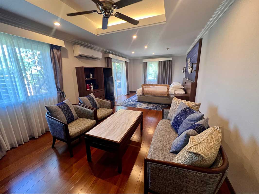 家族旅行では、屋根付きベランダがある「ガーデンヴィラ」に宿泊しました。