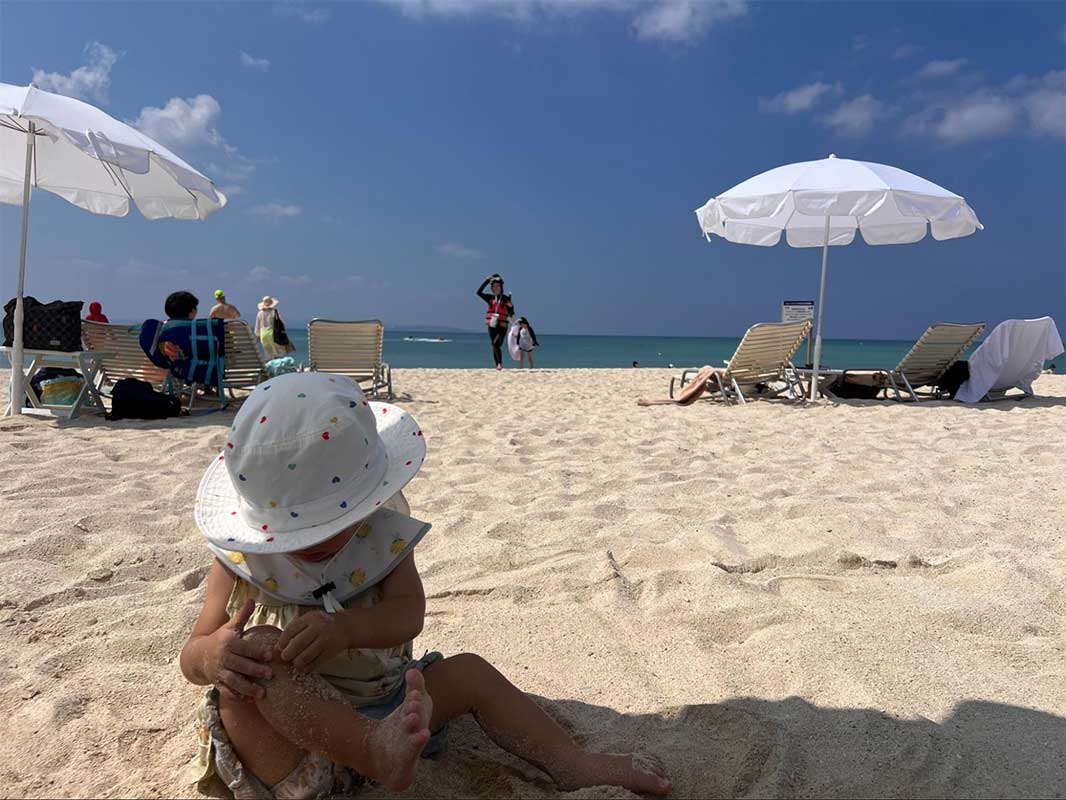 子どもは砂遊びに夢中。大人はその姿を眺めながら穏やかな午後を過ごしました。