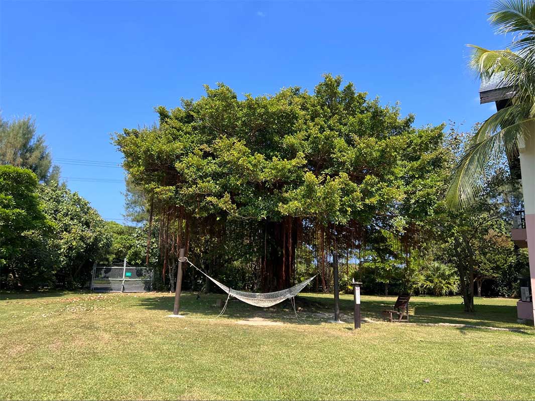 ハンモックや小さな芝生広場もあり、のんびりとした空気に包まれます。