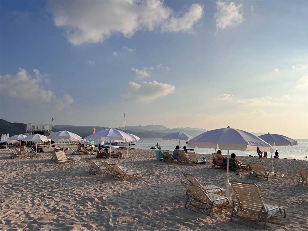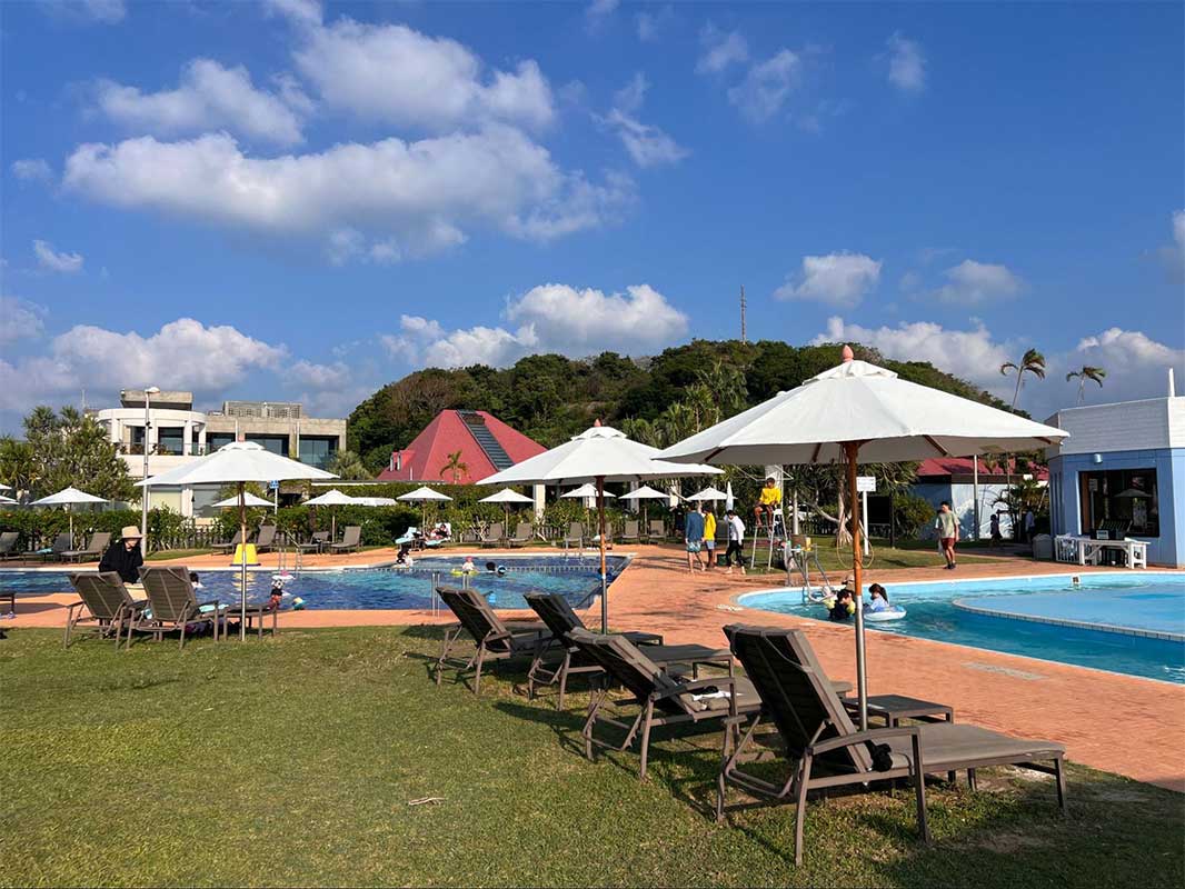 浅めの子ども用プールも完備されており、小さな子でも思い切り水遊びが楽しめます。ビーチチェアやタオルは無料で利用できるので、身軽に過ごせるのも魅力です。
