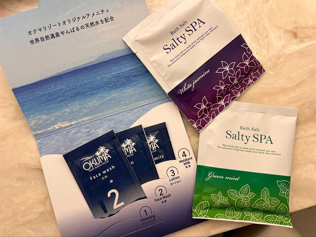 スキンケアは、やんばるの天然水を使用したオクマのオリジナル製品。使い心地も良かったです。