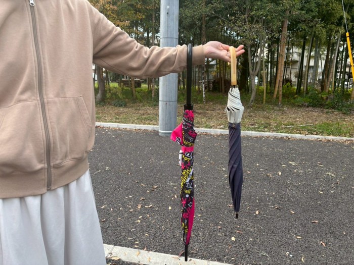 少し短めの日傘も入れてみた。こちらも問題なく使える。