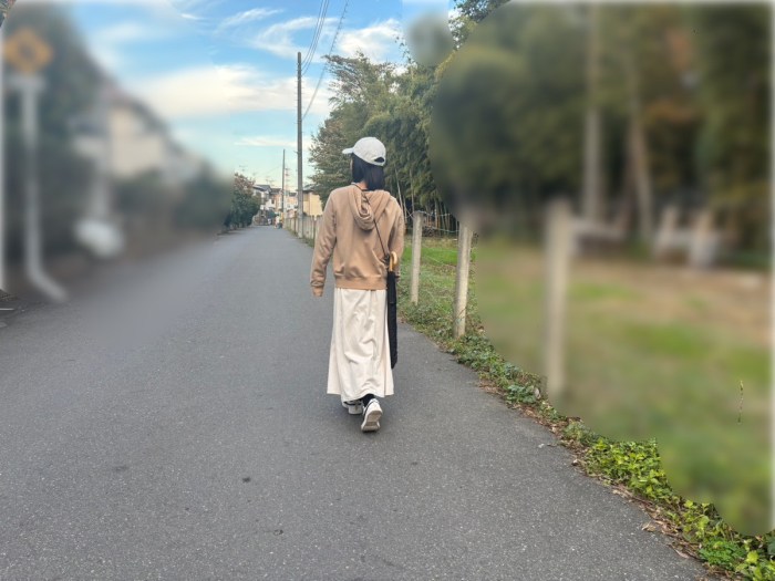せっかくなので、そのままポシェットを肩にかけて近所を散歩。