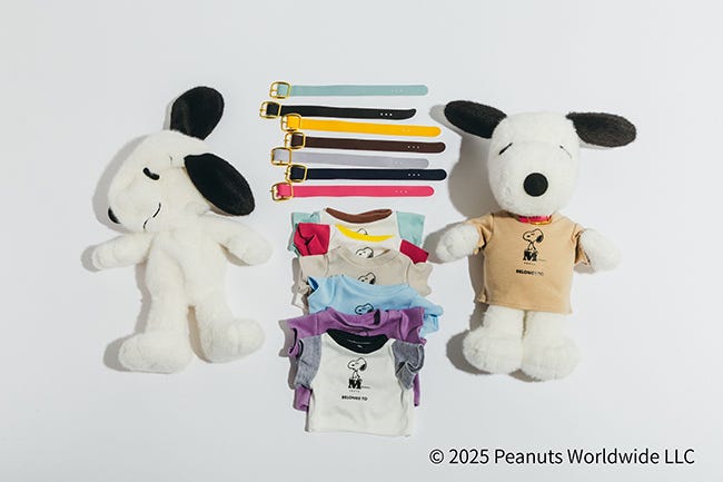 ボディにペレットや綿を入れたら、名前入りのTシャツや首輪を付けて完成! オリジナルのスヌーピーが作れるので、特別な贈り物にもよさそう。