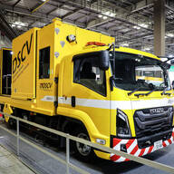 プレスカンファレンスで、いすゞ自動車(本社:神奈川県横浜市)COOの南真介代表取締役とUDトラックス(本社:埼玉県上尾市)CEOの伊藤公一代表取締役社長が登壇して紹介したのが、世界初公開のコンセプトカー「Vertical Core Cycle Concept」、略してVCCCだ。