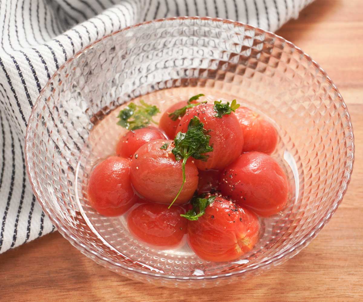 コンポートは果物で作るイメージが多いかと思いますが、今回はミニトマトのコンポートをご紹介します。野菜ならではのさっぱりさと優しい甘味でくせになる味わいです。