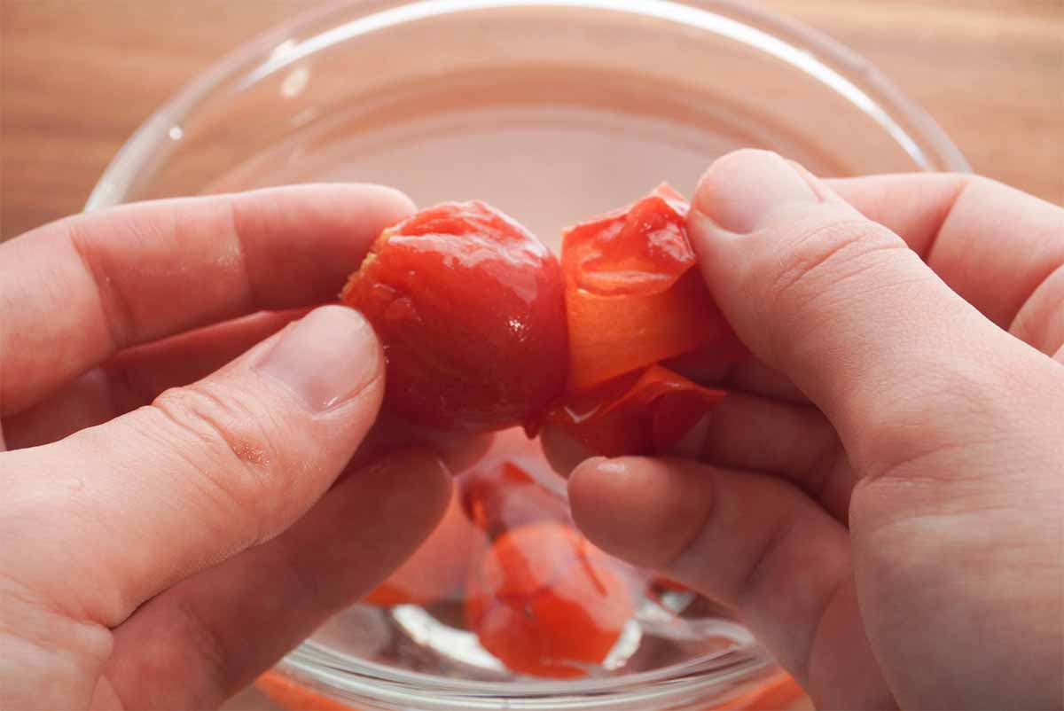湯むきをうまく行うコツは、加熱した後しっかり冷やすことです。