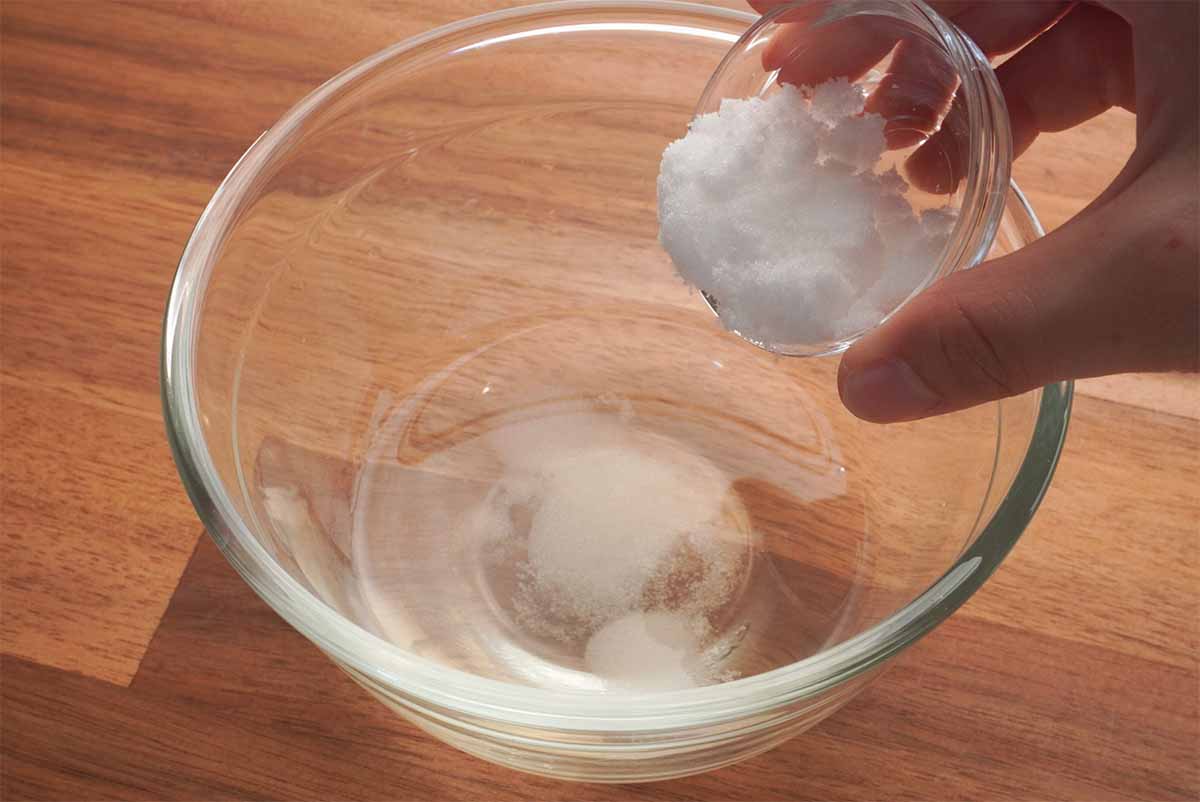 ③耐熱容器に水、レモン汁、砂糖を入れて600wのレンジで1分加熱して砂糖を溶かします。加熱が終わったらよくかき混ぜます。