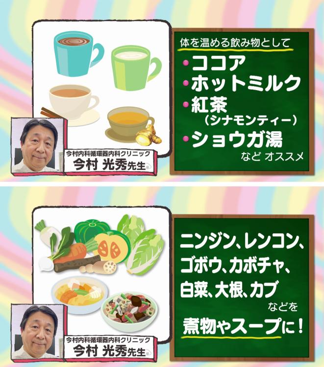 今村先生によると、寒い季節の免疫力アップには以下の3つが基本となるそうです。