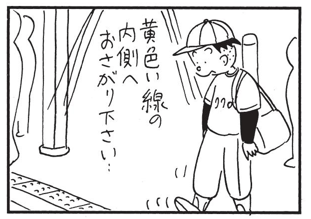 朝イチ更新!4コマ漫画『かりあげクン』駅のホームでひらめいた珍アイデア