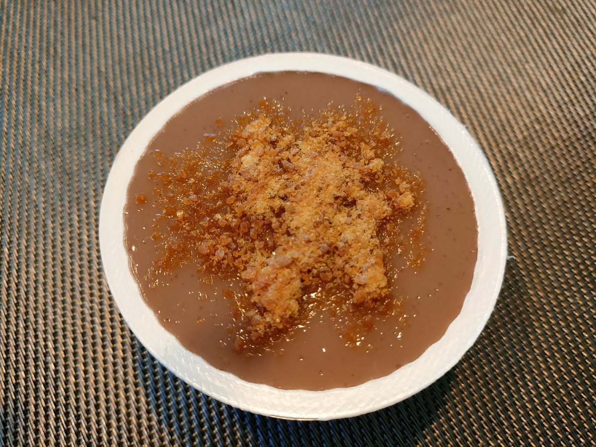 開けてみると、マロンのプリン?の部分と、別添のカラメルクラッシュに分けられていました。