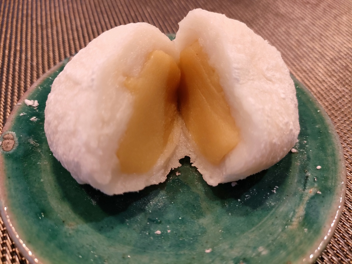 大福の中には安納芋の餡がぎっしり。