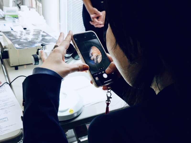 特に盛り上がったのは、顕微鏡で見ているのと同じ様子をスマートフォンで撮影する方法。これには子どもから大人まで、参加者全員が何度も挑戦して楽しんでいました。