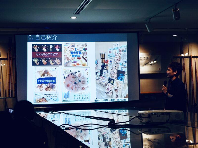 無脊椎動物の魅力に取りつかれたきっかけから著書出版に至る経緯まで、生きものたちの魅力とともに語りました。