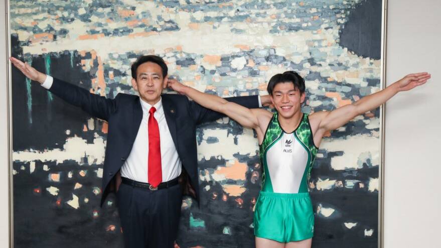 式典後には内村さんが「これから未来へ羽ばたく若者たちへ」をテーマに講演。自身の競技人生から得た目標達成に必要な没頭力、継続力、思考力の三つの柱を説明し、「できないでなく、どうやってできるかという思考を持てると、何事も才能はいらない」とアドバイスを送った。