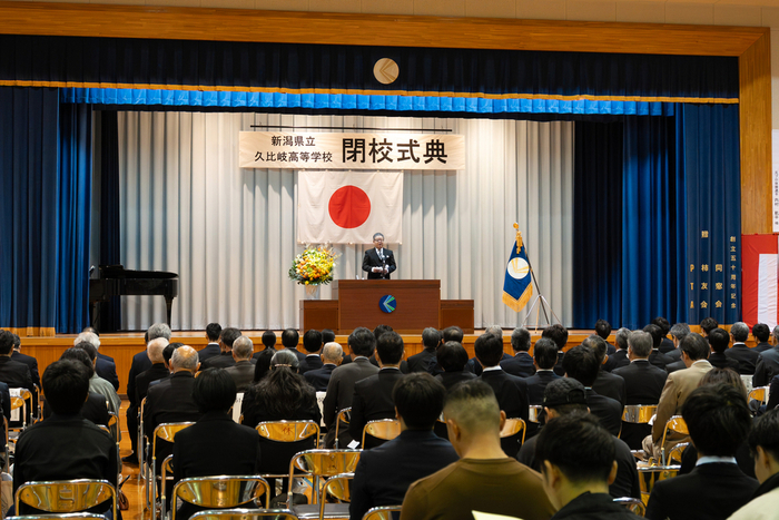 生徒数減少などにより本年度閉校する新潟県上越市柿崎区の県立久比岐高校で2025年10月25日、閉校式典が行われた。全校生徒12人をはじめ、同窓生や旧職員ら約230人が20年の歴史に思いをはせたほか、体操男子・五輪金メダリストの内村航平さん(36)による記念講演も行われた。