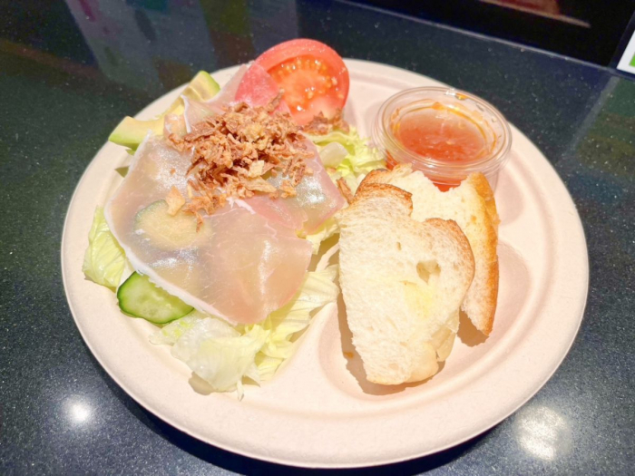 フレッシュなジュースとあわせてぜひ頼んでほしいのが、+330円で追加できる「サラダプレート」です。