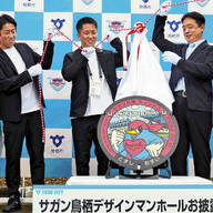 東京立川こぶしロータリークラブ会長と立川市長、そしてウドラとくるりんの記念ショット。