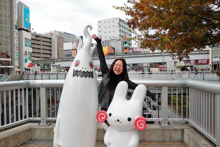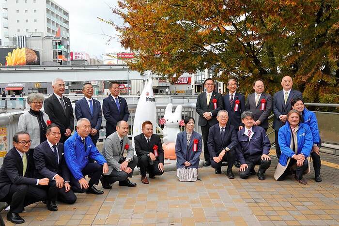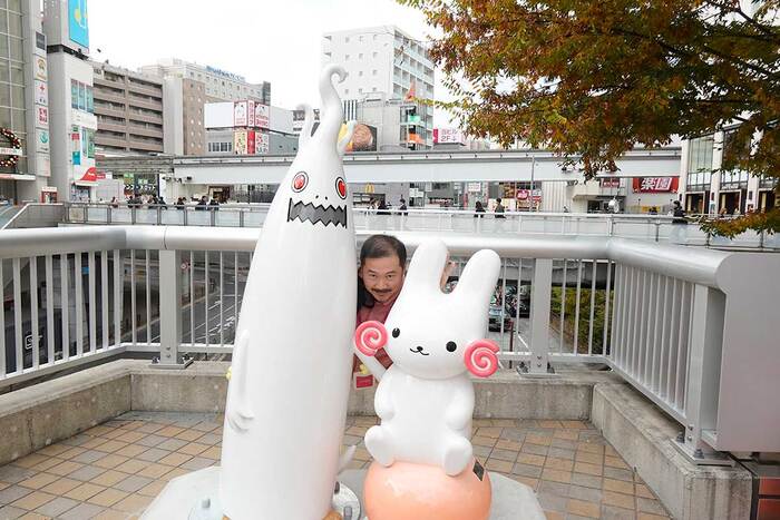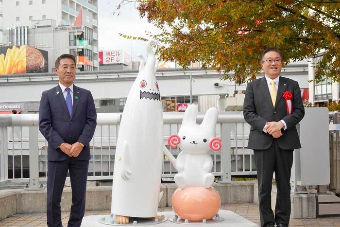 ついにお披露目!立川駅南口歩行者デッキに設置工事してた「くるりん」と「ウドラ」のモニュメントが公開されてて南口随一のフォトスポットになりそう