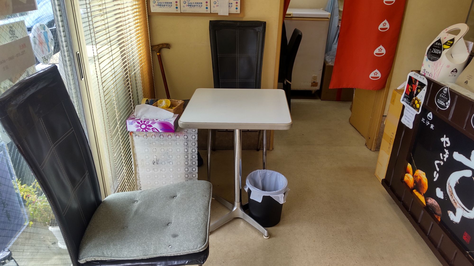 入口に入ると左手に2人掛け用のテーブルがあり、店内でいただくことができます。奥さまや店主さんとの距離も程よく近く、自然体のおふたりとの他愛ない会話が心地よく感じました。