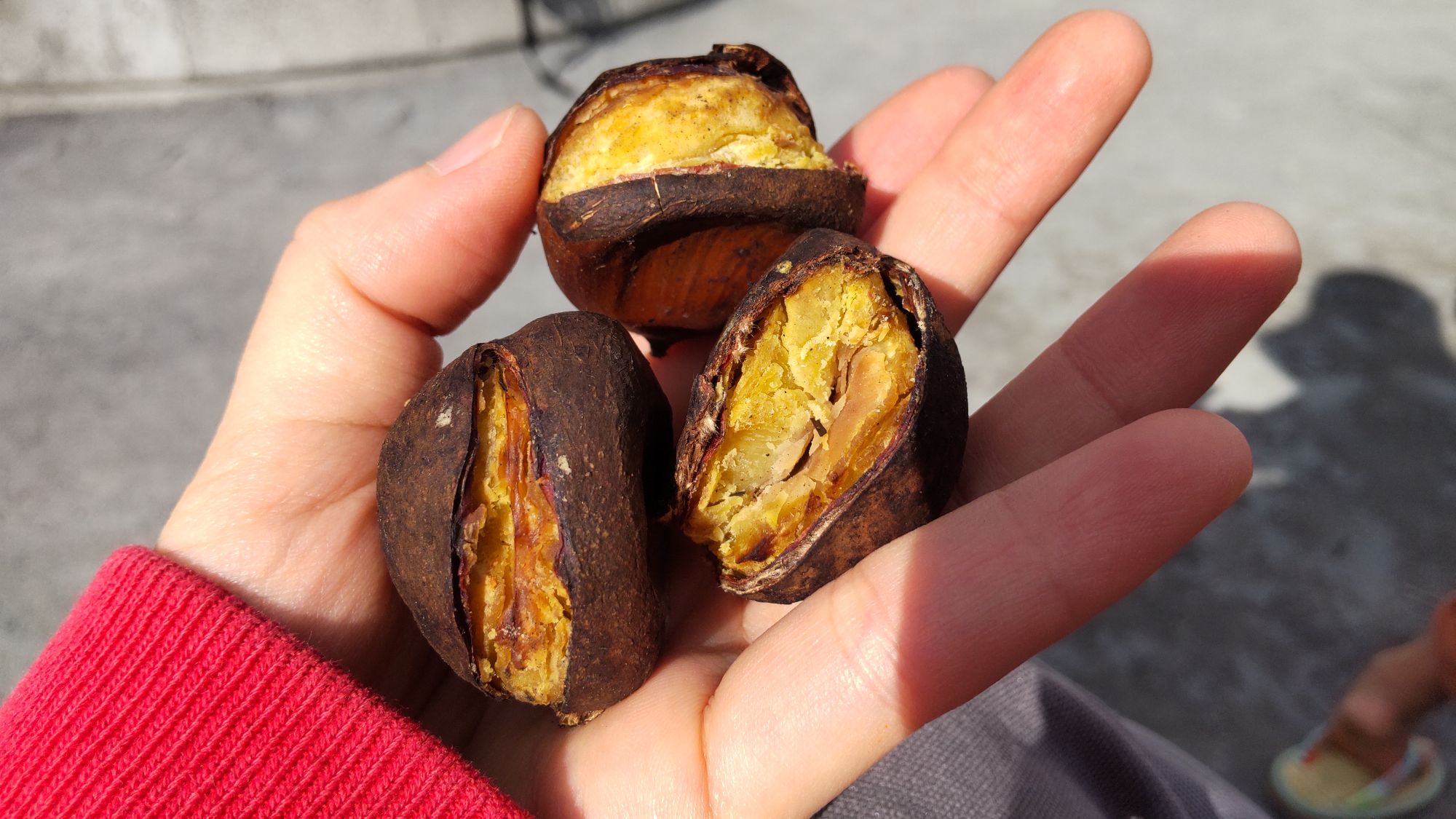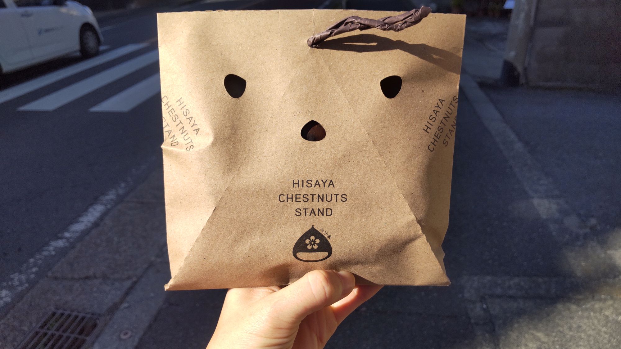 今回筆者は、お試し用(税込590円)の焼き栗を注文しました。栗のイラストがモチーフのシンプルなパッケージがかわいい。お店の奥から、ホカホカの温かいものを出していただいたのも嬉しかったです。