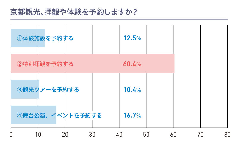 寺社での期間限定の特別拝観や、工房でのものづくり体験など、京都ならではの体験をするために、予約をしている方はどのくらいいるのでしょうか?