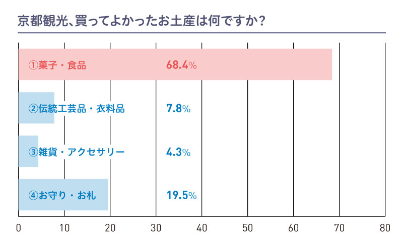 大切な人や自分へのお土産選びも京都観光の楽しみではないでしょうか。どのようなお土産を選ぶ方が多いのか、調査しました。