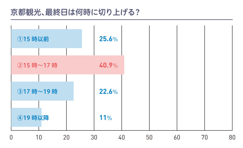 京都観光をたっぷりと楽しんだ最終日は、何時に観光を切り上げて帰路に着きますか?旅の〆にあたる、皆様のルーティンを調査しました。